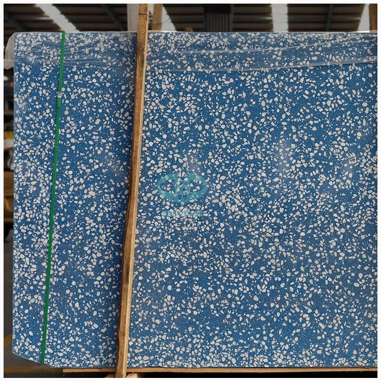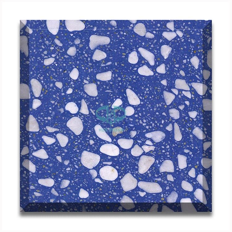 Oriental Blue Terrazzo Stone, glavna komponenta su čiste bijele mramorne čestice, prirodni kvarcni prah i ostalo prešano. Odrasla boja je tamnoplava, lapis lazuli. Ukupna boja je ista kao boja drevnog kineskog seladona, svijetlo plava, pogodna za slaganje s drugim bijelim ukrasnim materijalima kako bi se poboljšao ritam cijelog prostora.
